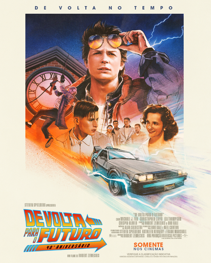 Já De Volta para o Futuro, dirigido por Robert Zemeckis, conta a história de Marty McFly (Michael J. Fox), um típico adolescente americano dos anos 80, que é acidentalmente enviado de volta a 1955 em uma DeLorean movida a plutônio, uma máquina do tempo inventada por um cientista excêntrico. Durante sua jornada, Marty deve garantir que seus pais adolescentes se conheçam e se apaixonem para poder retornar ao futuro. A obra estará disponível nos cinemas entre os dias 05 e 12 de novembro, também em IMAX, 4DX e DBOX.