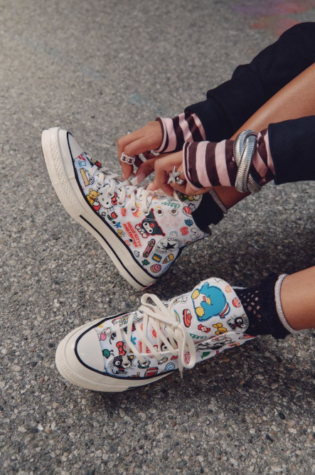 Com modelos para adultos e crianças, a collab apresenta versões exclusivas do Chuck 70 e do Chuck Taylor All Star, além de acessórios que trazem Hello Kitty® e seus amigos em estampas e aplicações especiais. A proposta combina o DNA urbano da Converse com a estética leve e afetiva dos personagens, resultando em uma linha que equilibra nostalgia e atitude contemporânea.
