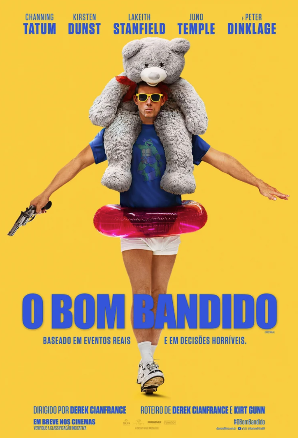 O elenco de O BOM BANDIDO, além de Tatum e Dunst, também conta com Juno Temple, Lakeith Stanfield e Peter Dinklage. Além da direção, Derek Cianfrance também assina o roteiro, que foi escrito juntamente com Kirt Gunn.