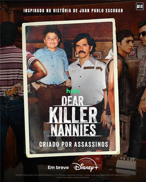 O Disney+ revelou um primeiro olhar inédito de Dear Killer Nannies – Criado por Assassinos, uma nova série dramática exclusiva inspirada na infância e na adolescência de Juan Pablo Escobar, filho do narcoterrorista colombiano Pablo Escobar Gaviria. Com um elenco de destaque, liderado por John Leguizamo como Pablo Escobar Gaviria, a nova produção narra a história sob a perspectiva do filho de Escobar ainda criança, explorando sua relação com o pai, o ambiente em que cresceu e os assassinos de aluguel contratados para protegê-lo, que acabaram se tornando suas “babás” improvisadas. A série estreará no Disney+ na América Latina e no Hulu nos Estados Unidos.