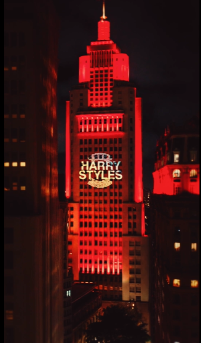 Ontem, dia 06 de março, o Farol Santander brilhou com uma projeção em comemoração do novo álbum de Harry Styles e um aquecimento para os shows no Estádio MorumBIS, em São Paulo.