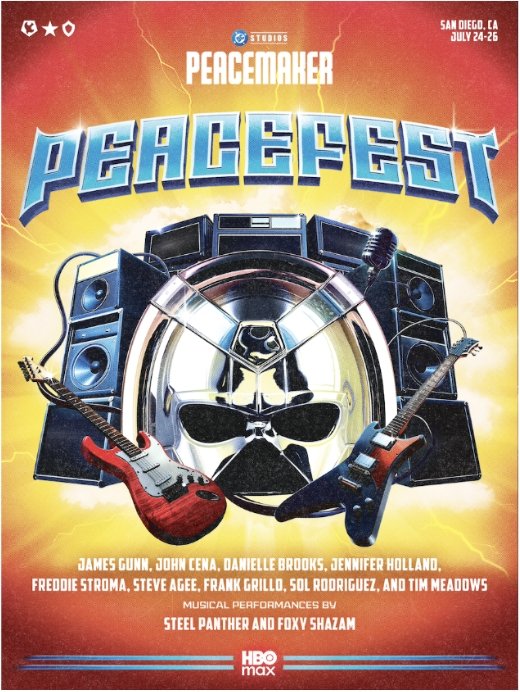 Na noite de sábado, 26 de julho, o Peacefest encerrará com um evento exclusivo para imprensa, que contará com a presença do elenco e produtores executivos da série, talentos da DC e apresentações ao vivo de Foxy Shazam e Steel Panther. Um número limitado de fãs será sorteado para participar dessa noite especial.