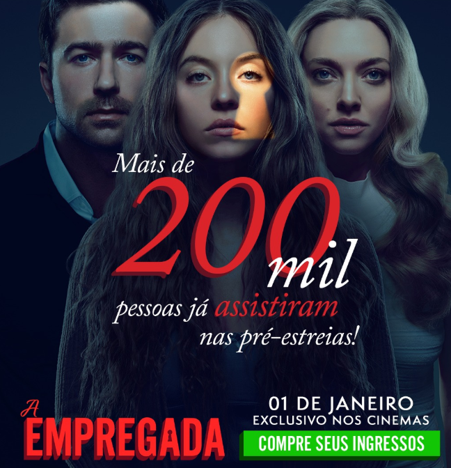 Com exibições limitadas a apenas uma sessão diária, realizadas entre os dias 19 e 21 e de 25 a 31 de dezembro, o filme A Empregada (The Housemaid), distribuído pela Paris Filmes, já ultrapassou a marca de 200 mil espectadores nos cinemas brasileiros. Baseado no livro homônimo de Freida McFadden, o elogiado suspense chega oficialmente ao circuito comercial em 1º de janeiro. A produção registra 92% de aprovação do público no agregador de críticas Rotten Tomatoes, segundo dados apurados em 30 de dezembro de 2025.