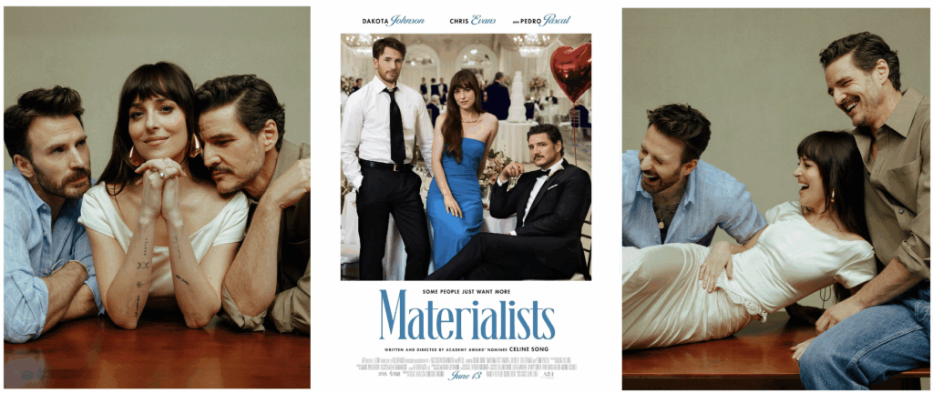 Pedro Pascal, Dakota Johnson e Chris Evans estampam primeiro pôster do drama Materialists