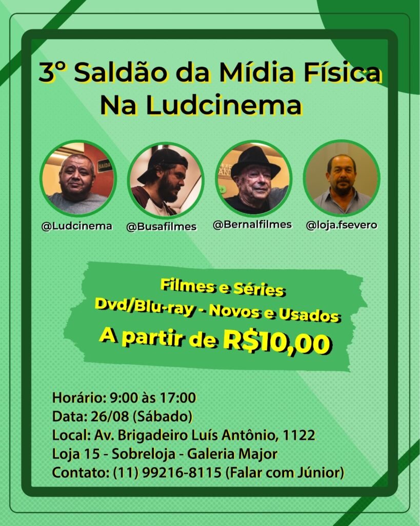 Neste sábado 26/08 acontecerá o 3º Saldão da Mídia Física na Ludcinema. Esse micro evento é uma extensão do Bazar da Sétima Arte, um evento que rola no Cine Petra Belas Artes em São Paulo, que visa divulgar e valorizar filmes em formatos físicos, no caso VHS, DVD, Blu-ray e 4K. “Acreditamos que o formato […]